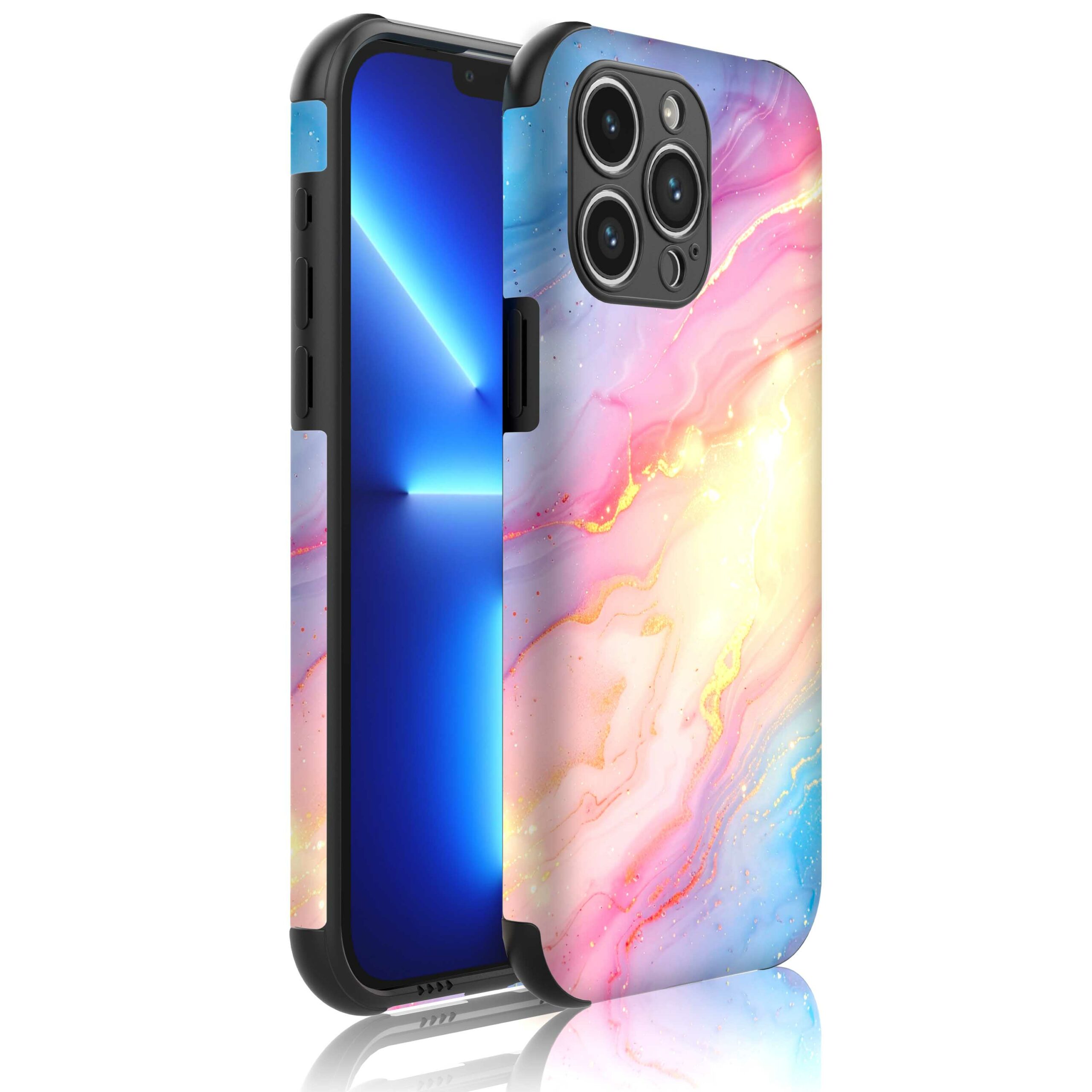 1x Telefoonhoesje geschikt voor iPhone 13 Pro met regenboog glitter marmer opdruk