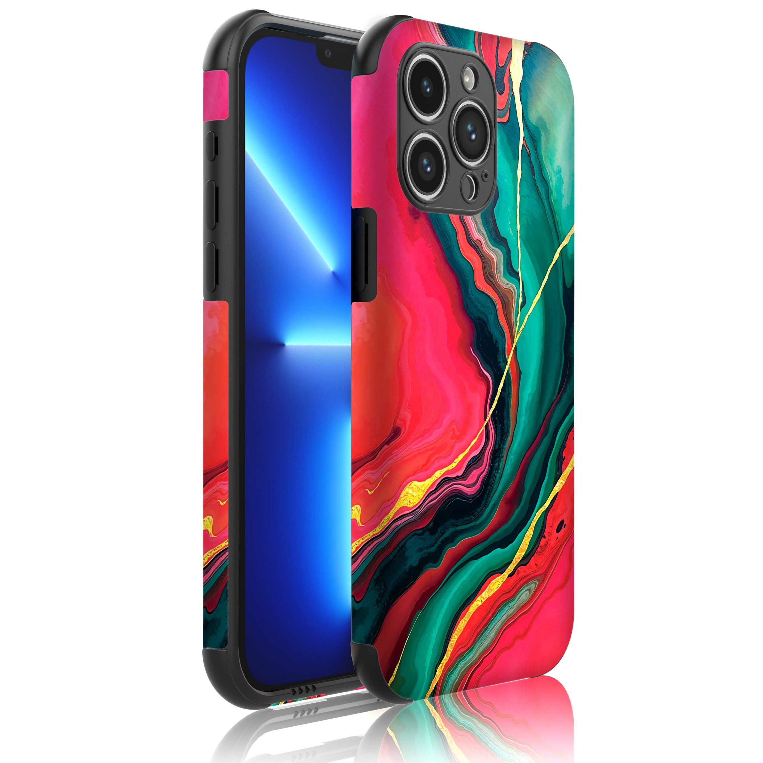 1x Telefoonhoesje geschikt voor iPhone 13 Pro met rood groen marmer opdruk