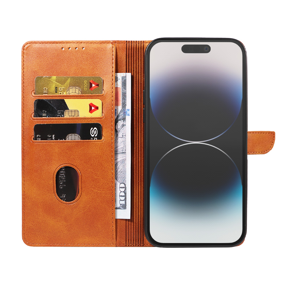 – 1x Kunstleren hoesje met magnetisch lipje iPhone 14 Pro Bruin