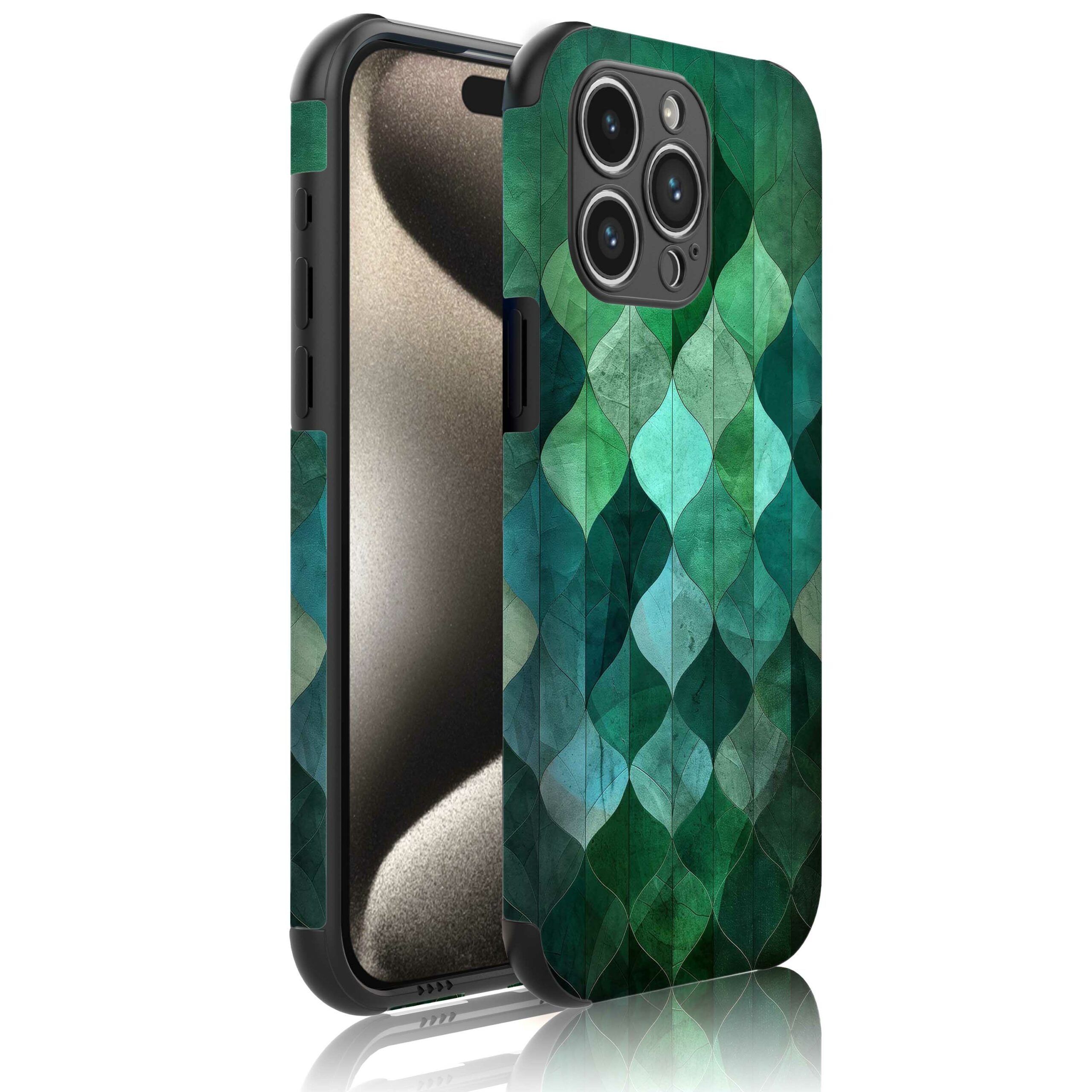 1x Telefoonhoesje geschikt voor iPhone 15 Pro Max met groene bladeren opdruk