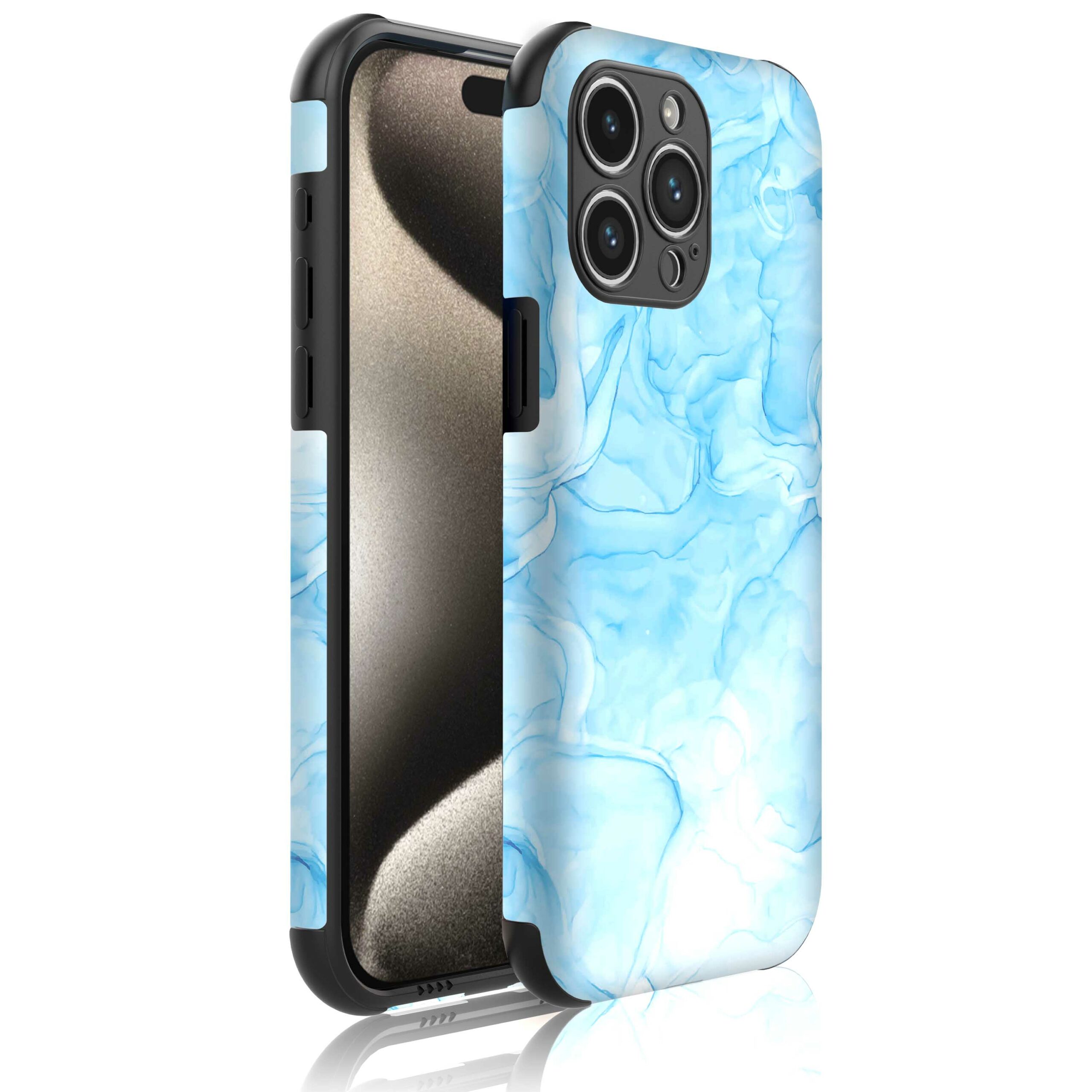 1x Telefoonhoesje geschikt voor iPhone 15 Pro Max met lichtblauw marmer opdruk