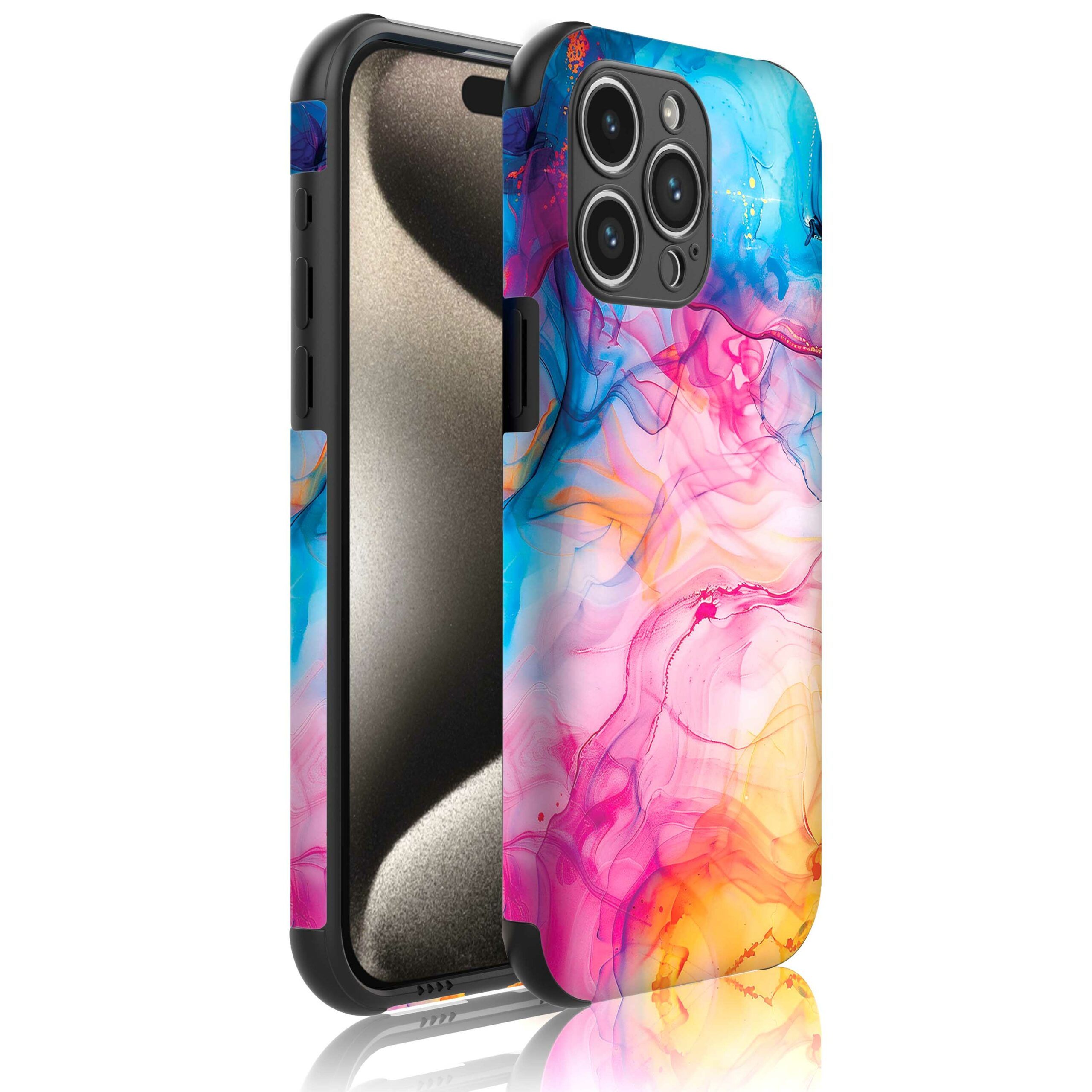 1x Telefoonhoesje geschikt voor iPhone 15 Pro Max met regenboog acryl marmer opdruk