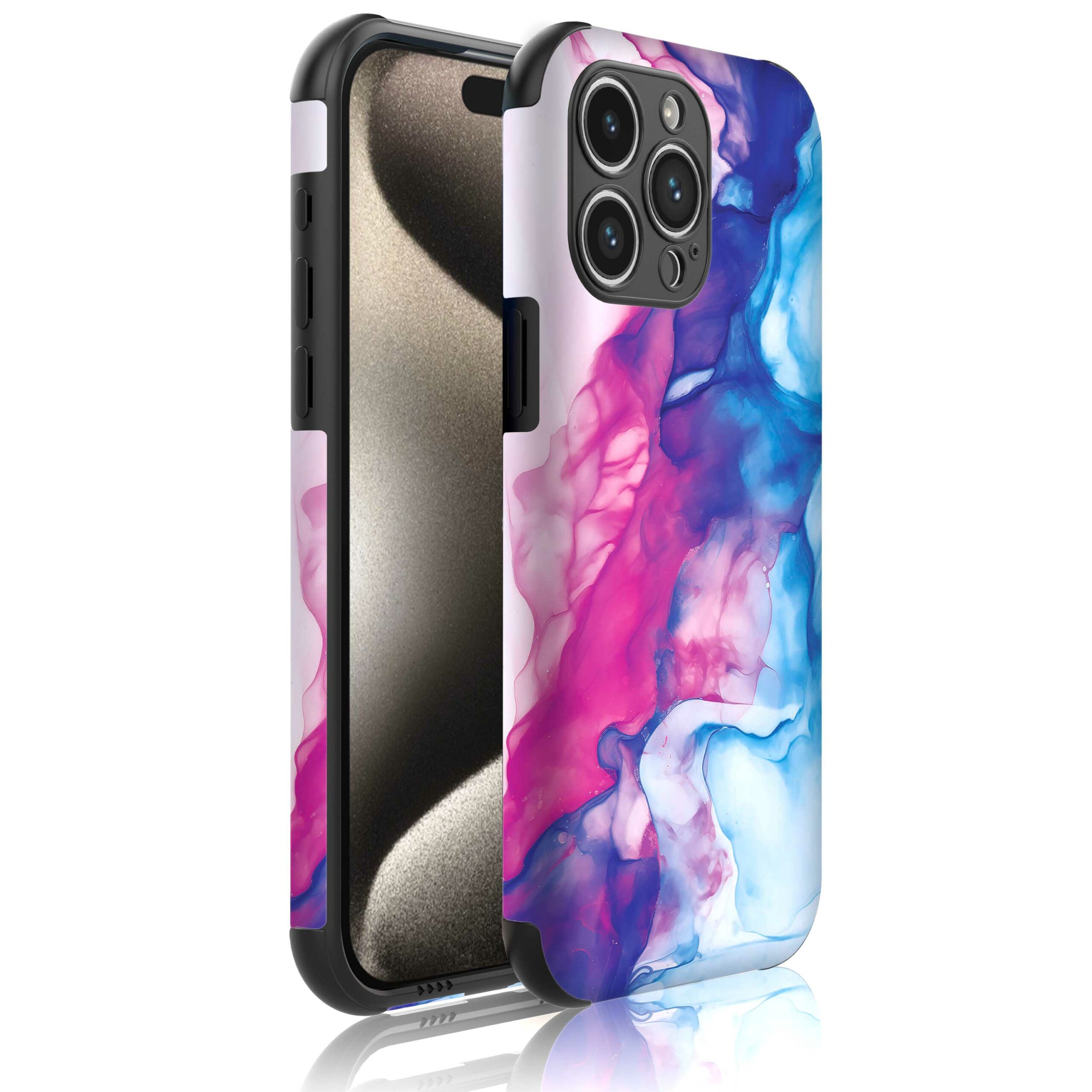 1x Telefoonhoesje geschikt voor iPhone 15 Pro Max met roze blauw marmer opdruk
