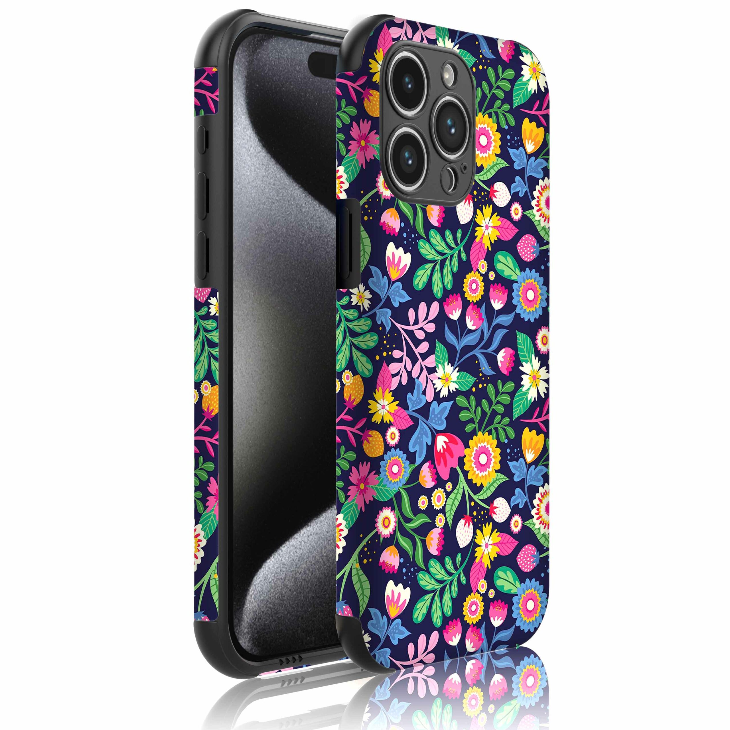 1x Telefoonhoesje geschikt voor iPhone 15 Pro met bloemen bladeren opdruk