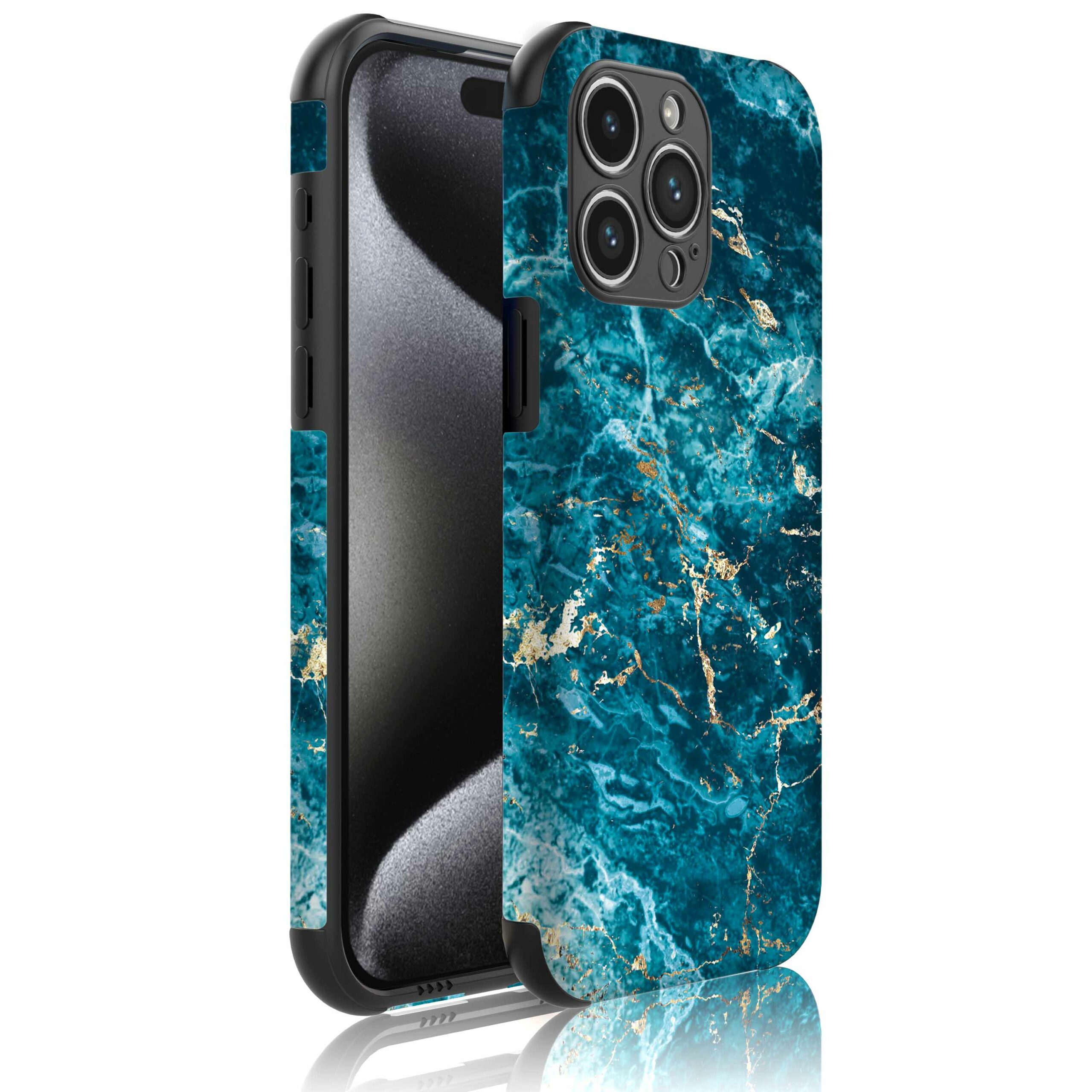 1x Telefoonhoesje geschikt voor iPhone 15 Pro met goud blauw marmer opdruk