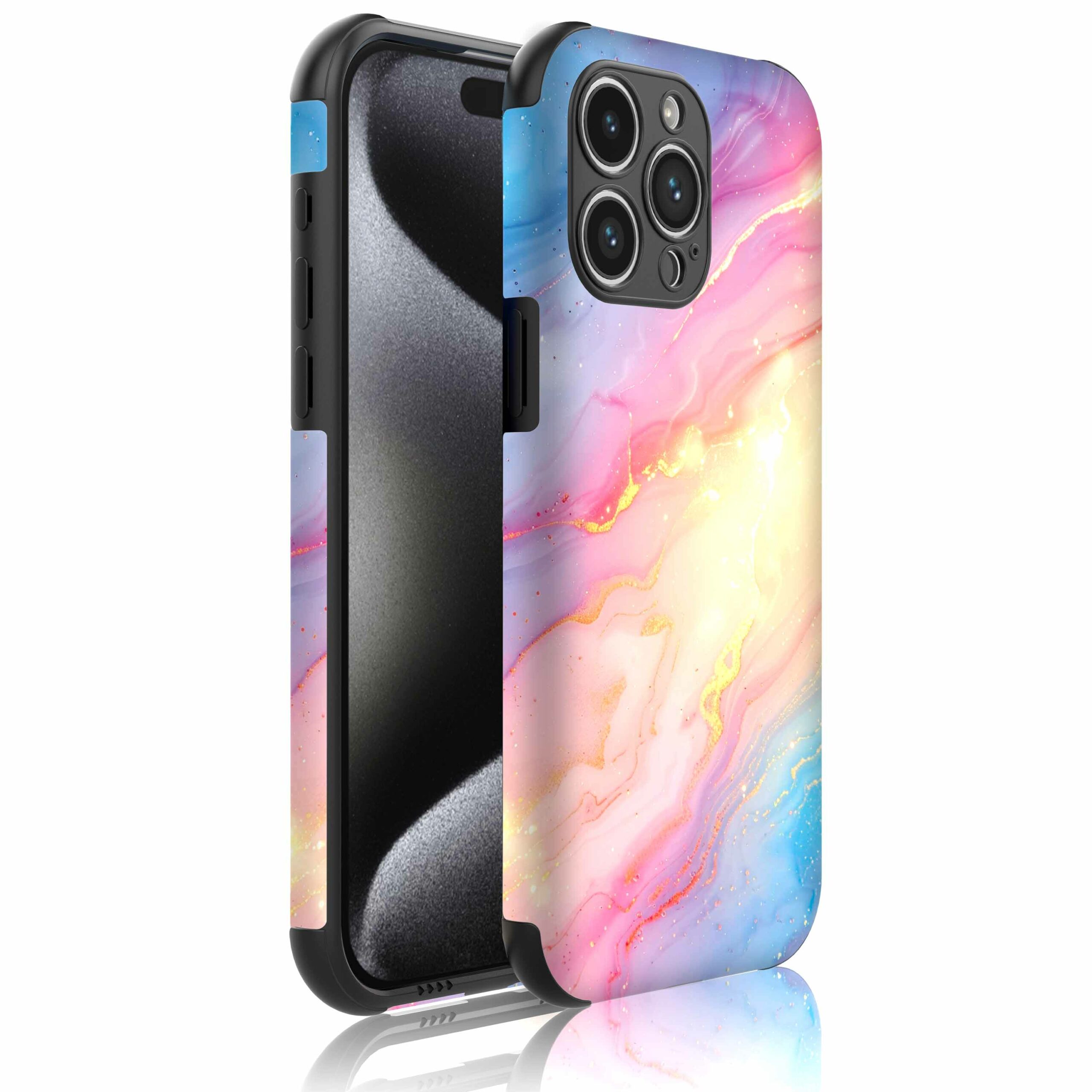 1x Telefoonhoesje geschikt voor iPhone 15 Pro met regenboog glitter marmer opdruk