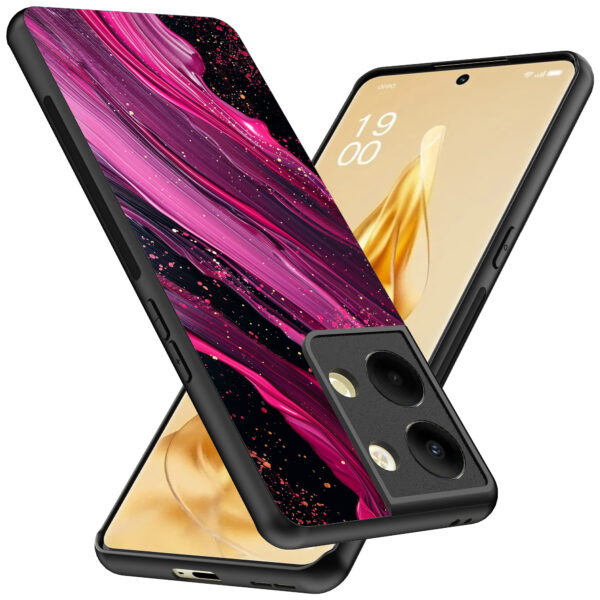 – 1x Oppo Reno 9 Pro Plus telefoonhoesje met paars roze marmer design