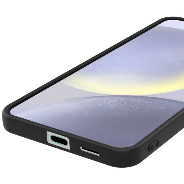 Het zwarte telefoonhoesje Samsung Galaxy S24 onderscheidt zich door zijn aandacht voor detail. De binnenzijde is gevoerd met een zachte microvezellaag die je toestel niet alleen beschermt, maar ook als een kussen omhult. Geen stofdeeltjes, geen krasjes, geen doffe plekken – alleen de pure glans van je Samsung Galaxy zoals je die graag ziet.